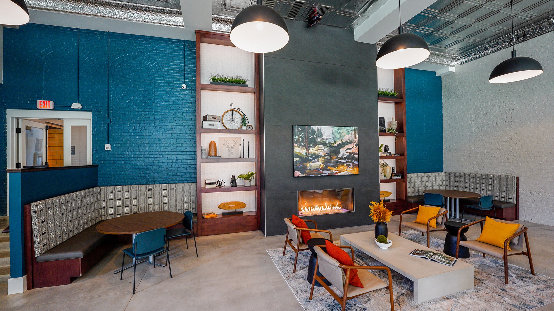 - Exposed brick walls with other various historic features