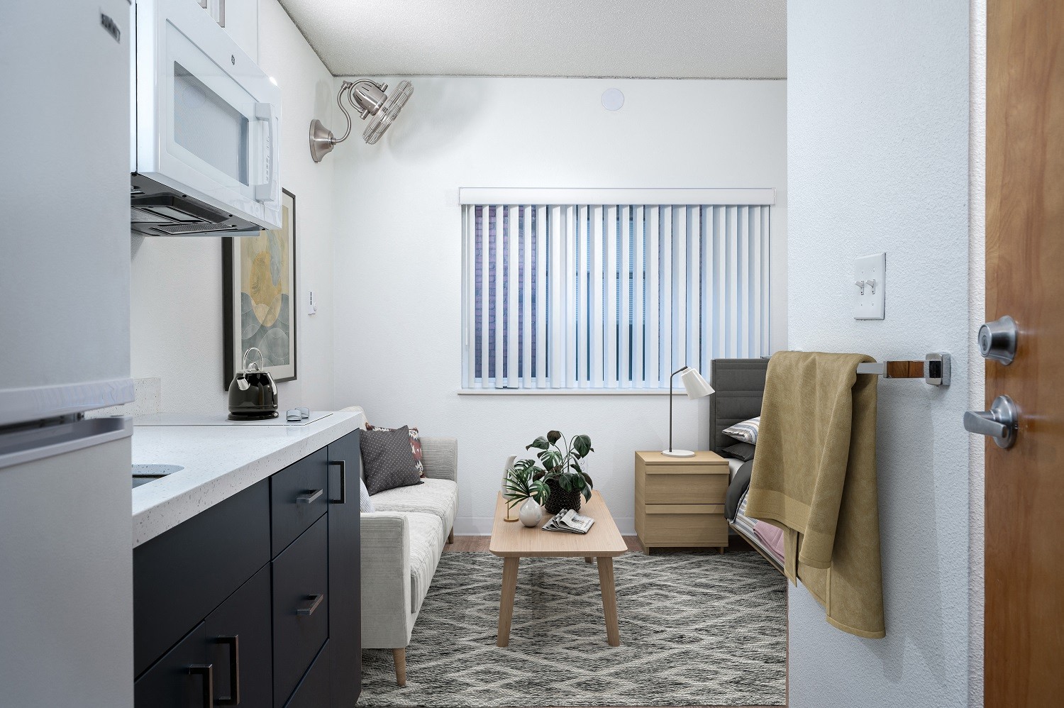 Alder Housing redefines urban living by offering affordable SRO (single resident occupancy) apartment homes and an array of community amenities that promote connection and comfort. If you're seeking a thriving community in the heart of Portland, look no further. Our homes come furnished with a twin bed and kitchenette that includes a fridge and microwave, as well as private toilets. Residents share bathrooms and kitchens, forge connections with your fellow residents while enjoying the convenience of these communal spaces. Alder House provides SRO homes for people making up to 60% of the area's median income (AMI) levels - $49,560. Contact us for more information on income requirements and the waitlist process.