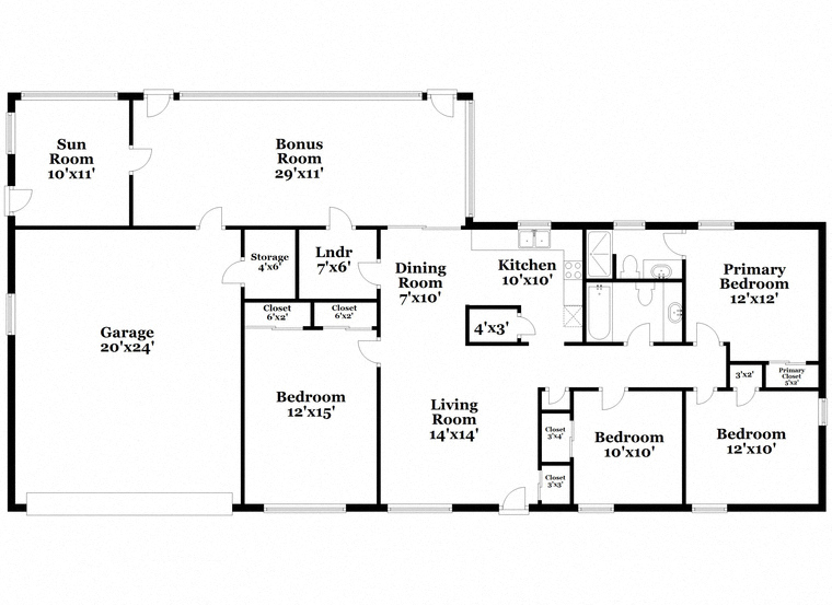 4 Beds / 2 Baths / 1,275 Sqft